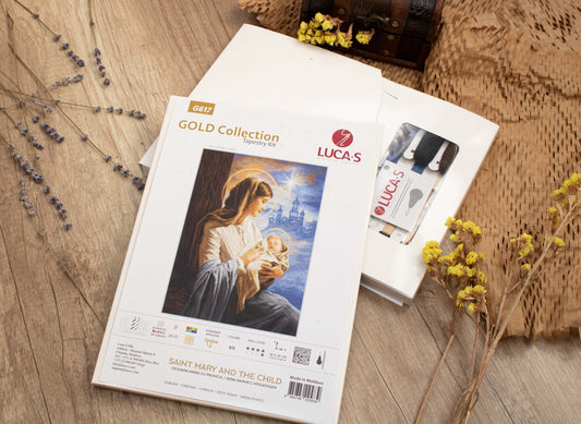 Set de brodat în goblen Luca-S GOLD - G617 Fecioara Maria cu Pruncul