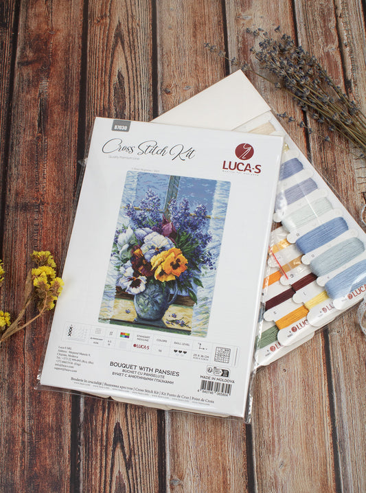 Set de brodat în cruciuliță Luca-S - B7030 Buchet cu Panseluțe