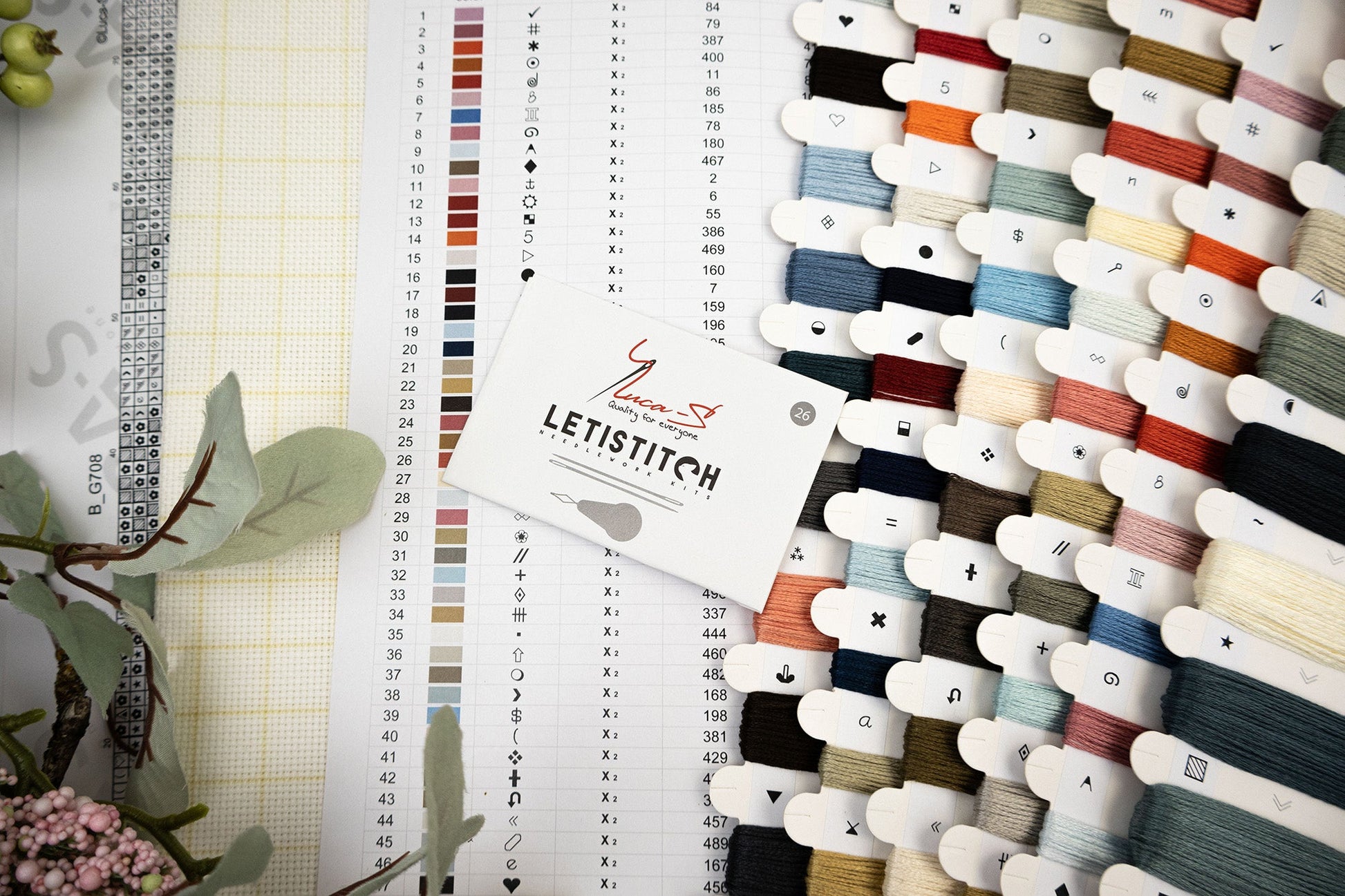 - Set de brodat în cruciuliță cu diagramă digitală disponibilă prin cod QR în interior