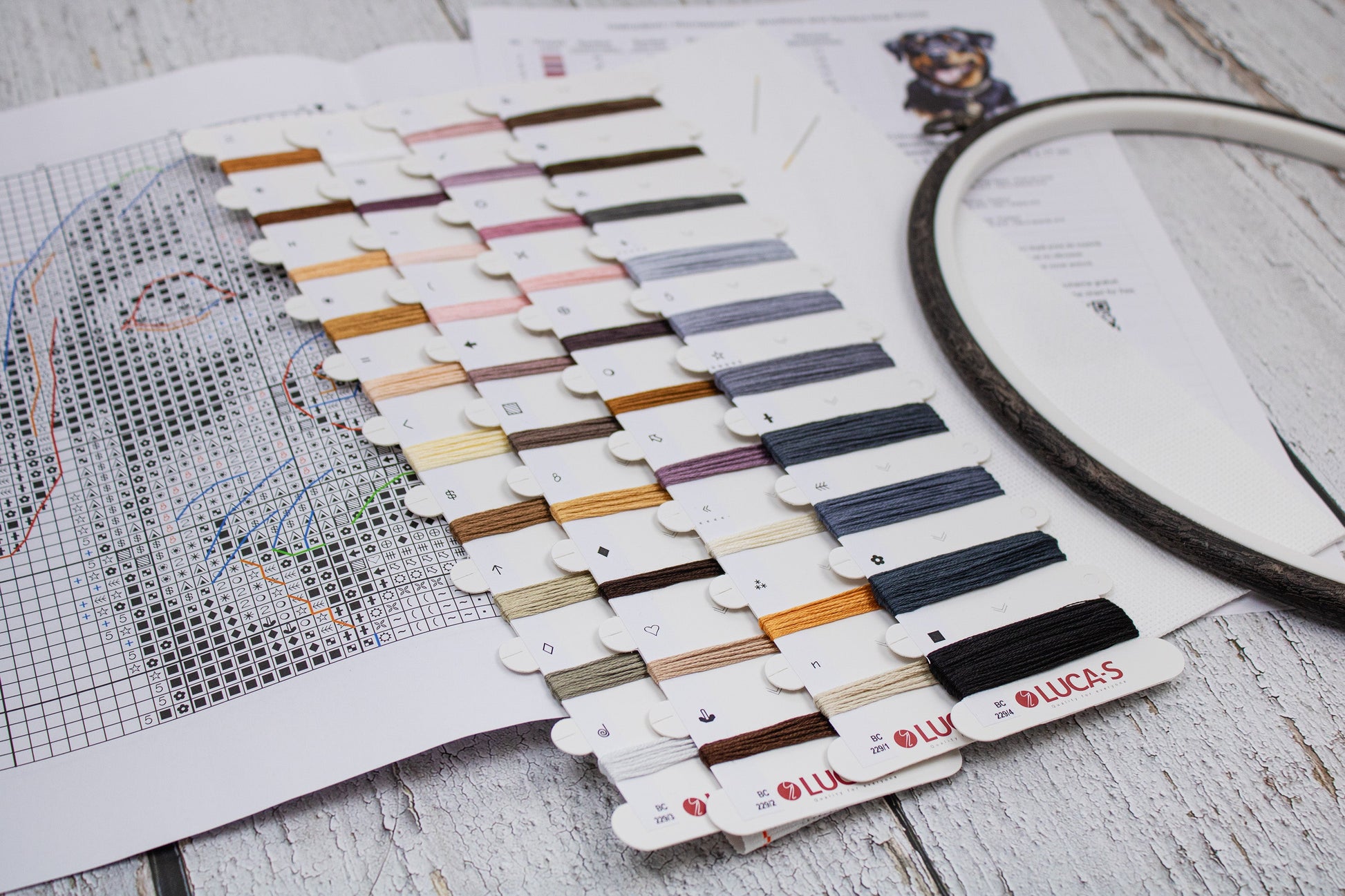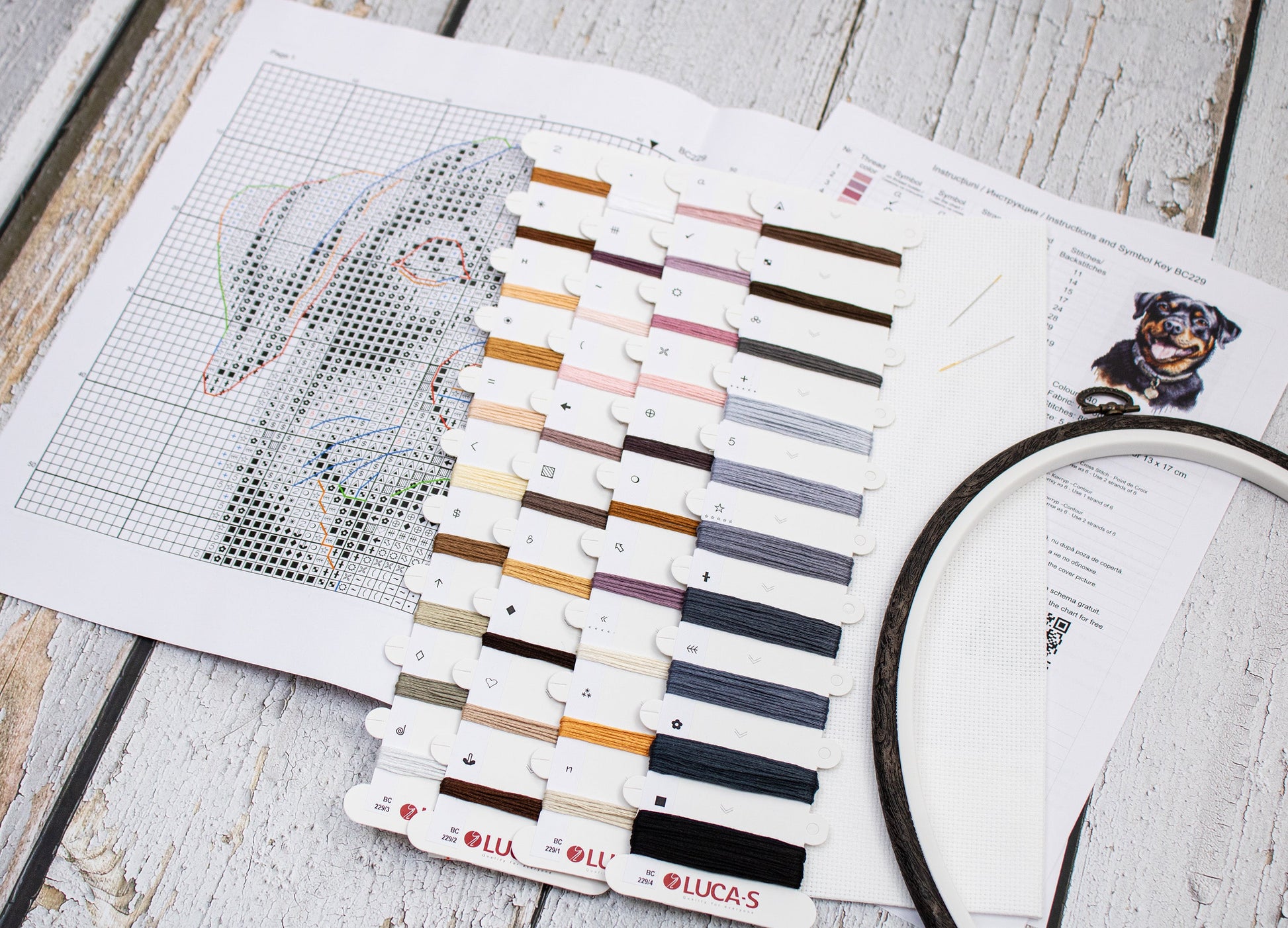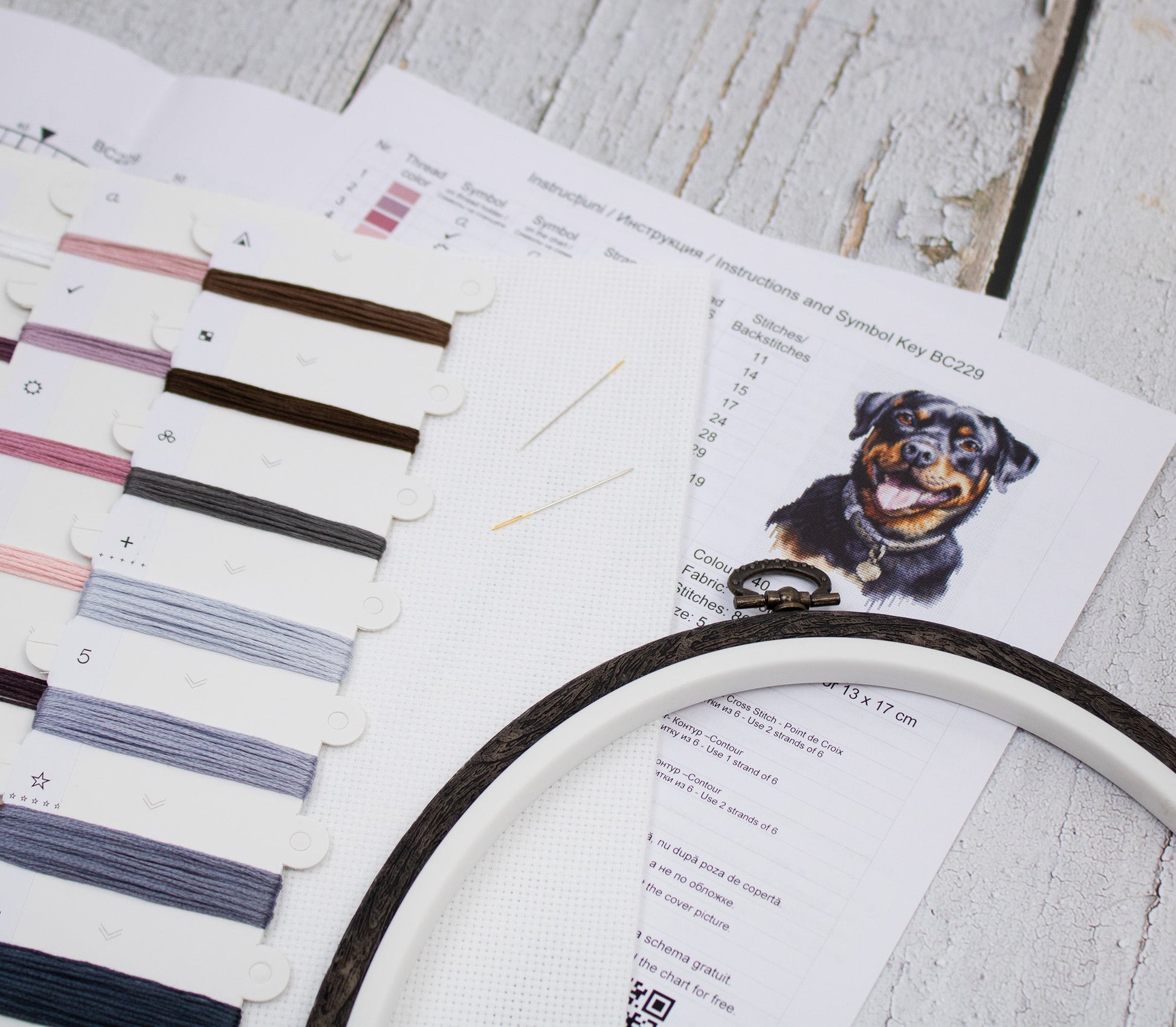 Set de brodat în cruciuliță cu cercul de brodat inclus - Rottweiler, BC229